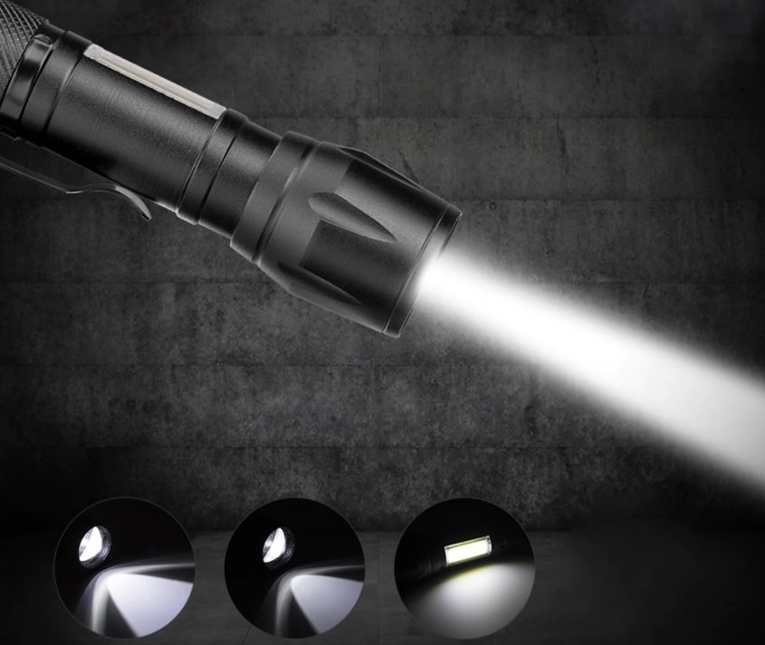 3 LED ışık mod: LED yüksek ışık, LED çakarlı lamba, COB yüksek ile push button On/Off tetik anahtarı